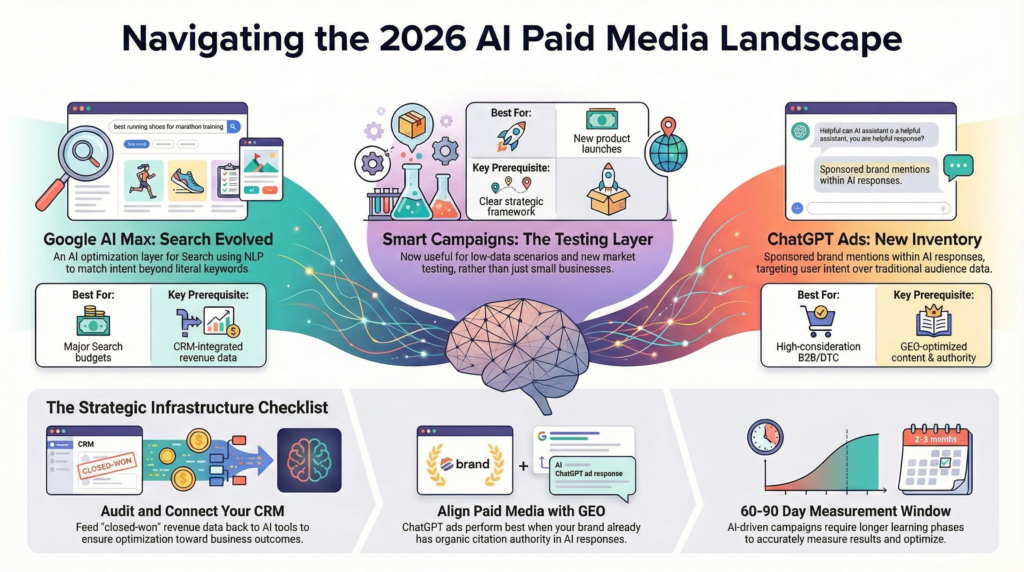 The real question is not whether to engage with Google AI Max, Smart Campaigns, or ChatGPT Ads. The real question is whether your broader paid media infrastructure is ready to make these tools work the way they are designed to work. If it is not, start there. Everything else follows.